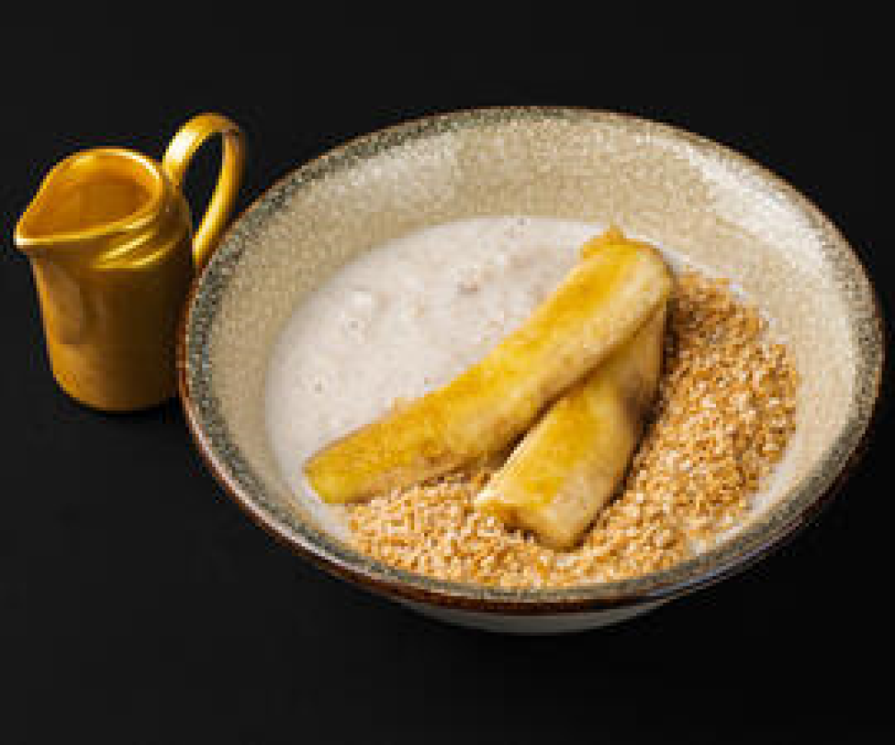 Каша рисовая на банановом молоке с карамелизованым бананом